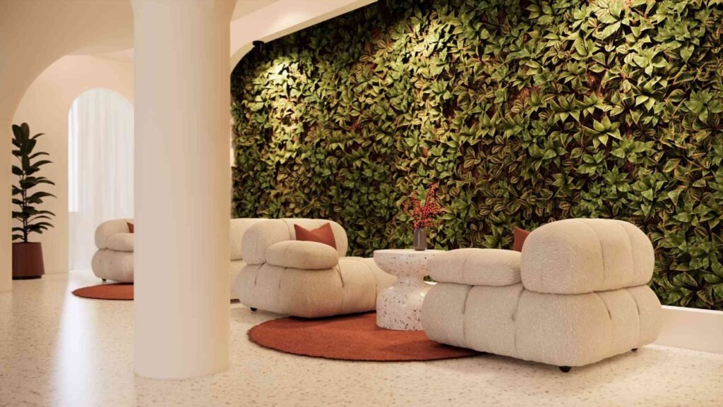This includes the optimization of air circulation, natural lighting, and the use of premium materials that actively support the health of its occupants.
